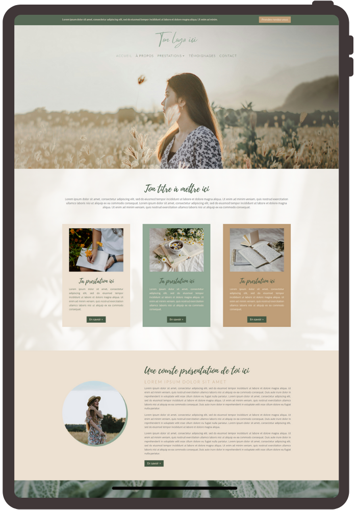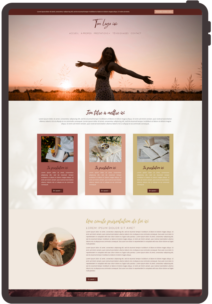 Parfait pour les thérapeutes holistiques, coachs en développement personnel, sophrologues, naturopathes ou autres praticiens du bien-être, ce template met en avant ton accompagnement tout en rassurant tes futurs clients.