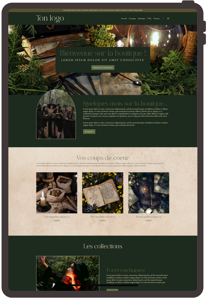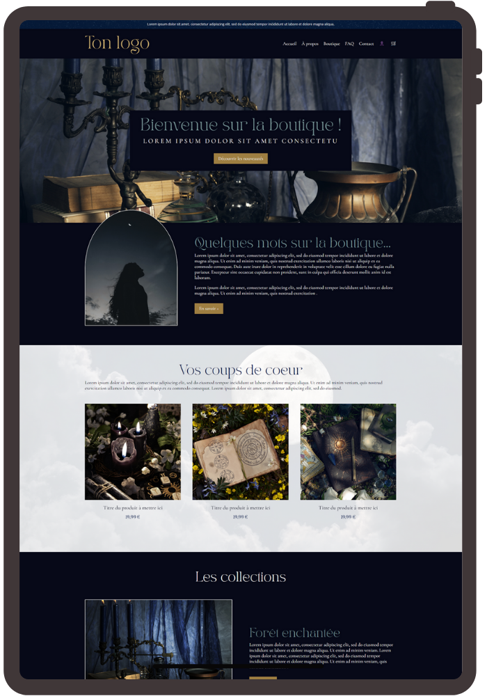Avec Hestia, ta boutique en ligne devient un véritable portail vers ton univers. Pensé pour les artisanes qui aiment les ambiances mystiques, ce template met en valeur tes créations et donne envie aux visiteurs de les acquérir !